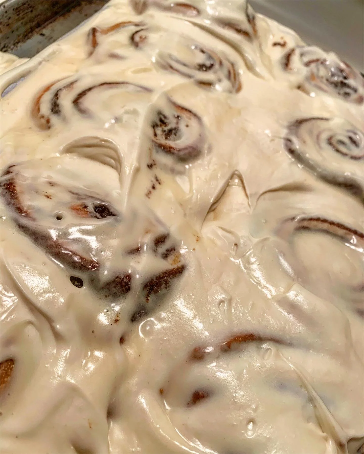 Each roll is baked fresh and served with an extra 1oz container of frosting on the side — because more is more and extra frosting is always guaranteed around here.
